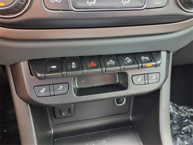 temperature control, Bumpers: body-color, Cloth/Leatherette Seat Trim, Compass, Delay-off headlights, Driver 6-Way Power Seat Adjuster, Driver door bin, Driver vanity mirror, Dual front impact airbags, Dual front side impact airbags, Electronic Stability Control, Exterior Parking Camera Rear, Front 1" Leveling Kit (LPO), Front anti-roll bar, Front Bucket Seats, Front Center Armrest, Front fog lights, Front License Plate Kit, Front reading lights, Front wheel independent suspension, Fully automatic headlights, HD Radio, Heated door mirrors, Heated Driver & Front Passenger Seats, Heated front seats, Heated steering wheel, Illuminated entry, Low tire pressure warning, Occupant sensing airbag, Outside temperature display, Overhead airbag, Overhead console, Panic alarm, Passenger door bin, Passenger vanity mirror, Power door mirrors, Power Driver Lumbar Control Seat Adjuster, Power driver seat, Power steering, Power windows, Premium audio system: Chevrolet Infotainment 3 Plus, Radio data system, Radio: Chevrolet Infotainment 3 Plus System, Rear reading lights, Rear seat center armrest, Rear step bumper, Rear window defroster, Remote keyless entry, Security system, SiriusXM Radio, Speed control, Speed-sensing steering, Steering wheel mounted audio controls, Tachometer, Telescoping steering wheel, Tilt steering wheel, Traction control, Trip computer, Variably intermittent wipers, Wheel Locks, and Wheels: 17" x 8" Bright Machined Aluminum.