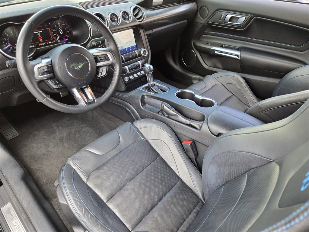 CARFAX One-Owner. Mustang GT Premium, 2D Coupe, 5.0L V8 Ti-VCT, 10-Speed Automatic, RWD, Shadow Black, Midnight Blue With Grabber Blue Stitch Leather.