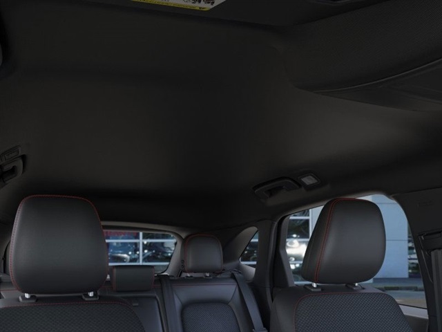 gency communication system: SYNC 4 911 Assist, FordPass Connect, Four wheel independent suspension, Front anti-roll bar, Front Bucket Seats, Front Center Armrest, Front dual zone A/C, Front reading lights, Fully automatic headlights, Illuminated entry, Knee airbag, Low tire pressure warning, Occupant sensing airbag, Outside temperature display, Overhead airbag, Overhead console, Panic alarm, Passenger door bin, Passenger vanity mirror, Power door mirrors, Power driver seat, Power steering, Power windows, Radio data system, Rear anti-roll bar, Rear reading lights, Rear seat center armrest, Rear window defroster, Rear window wiper, Remote keyless entry, Speed control, Speed-sensing steering, Speed-Sensitive Wipers, Split folding rear seat, Spoiler, Sport steering wheel, Steering wheel mounted audio controls, SYNC 4, Tachometer, Telescoping steering wheel, Tilt steering wheel, Traction control, Trip computer, Variably intermittent wipers, Vinyl/Cloth Front Sport Contour Bucket Seats, and Wheels: 18" Rock Metallic Painted Aluminum. 42/36 City/Highway MPG