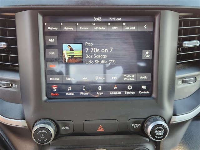 vel 1 Equipment Group, Black Interior Accents, Body Color Door Handles, Body Color Front Bumper, Body Color Rear Bumper w/Step Pads, Bucket Seats, Center Console Parts Module, Class IV Receiver Hitch, Cluster 3.5" TFT Color Display, Deluxe Cloth Bucket Seats, Exterior Mirrors Courtesy Lamps, Exterior Mirrors w/Memory, Exterior Mirrors w/Supplemental Signals, Foam Bottle Insert (Door Trim Panel), Front Seat Back Map Pockets, Full Length Floor Console, Glove Box Lamp, Grille B/Color Outline 1 Texture 2, Manual Adjust 4-Way Front Passenger Seat, Power 4-Way Driver Lumbar Adjust, Power 8-Way Driver Seat, Power Adjustable Pedals, Power Heated Fold Away Mirrors, Power Heated Fold-Away Mirrors, Power-Folding Mirrors, Quick Order Package 25Z Big Horn/Lone Star, Radio: Uconnect 4 w/8.4" Display, Rear 60/40 Folding Seat, Rear Dome w/On/Off Switch Lamp, Rear Power Sliding Window, Rear Window Defroster, Single Disc Remote CD Player, SiriusXM Satellite Radio, Sport Appearance Package, Steering Wheel Mounted Audio Controls, Sun Visors w/Illuminated Vanity Mirrors, Universal Garage Door Opener.