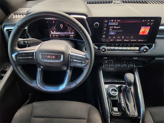 Clean CARFAX. Summit White 2023 GMC Canyon Elevation 4WD 8-Speed Automatic 2.7L Turbo LOCAL TRADE, CLEAN CARFAX, NON SMOKER, 4WD, NAVIGATION, KEYLESS ENTRY, REMOTE START, APPLE CARPLAY, ANDROID AUTO, SIRIUS XM RADIO, ON STAR, AM/FM/HD RADIO, BLUETOOTH HANDS FREE CALLING, FRONT USB CHARGING PORTS, MP3 IPOD COMPATIBLE, AUTO HEADLIGHTS, DAYTIME RUNNING LIGHTS, BLIND SPOT WARNING SYSTEM, REAR TRAFFIC ALERT, LANE DEPARTURE WARNING SYSTEM, POWER ADJUSTABLE DRIVERS SEAT, HEATED SEATS, LEATHER INTERIOR,