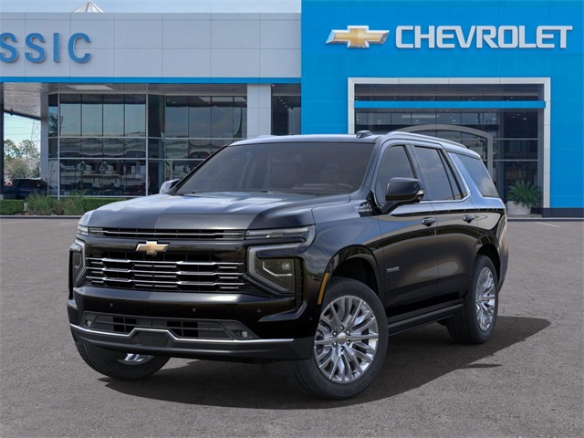 Black 2025 Chevrolet Tahoe High Country 4WD 10-Speed Automatic with Overdrive EcoTec3 6.2L V8 4WD, Jet Black Leather.