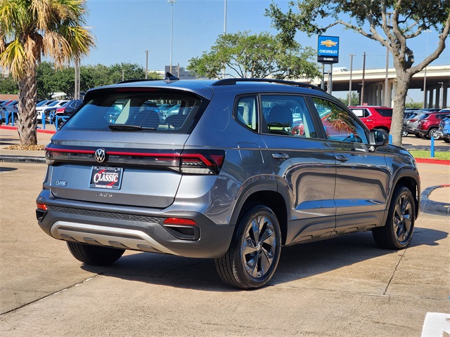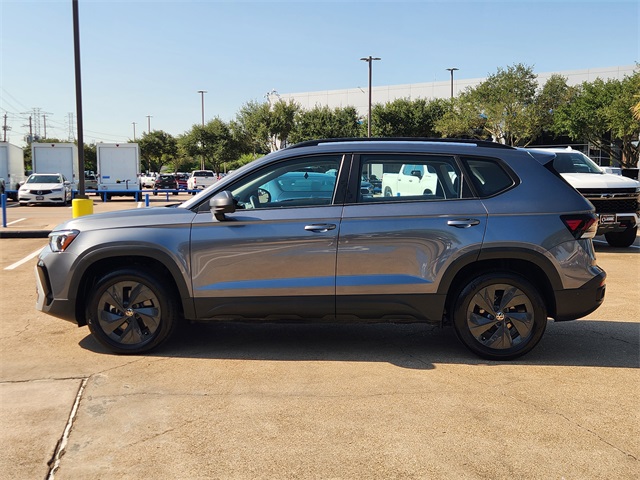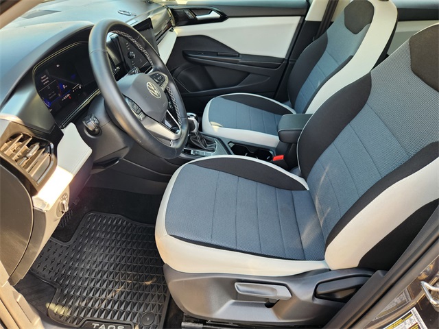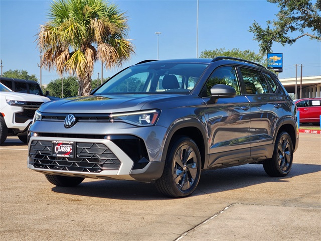 CARFAX One-Owner. Clean CARFAX. Pyrite Silver Metallic 2025 Volkswagen Taos 1.5T S FWD 8-Speed Automatic with Tiptronic 1.5L I4 Turbocharged DOHC 16V LEV3-SULEV30 174hp LOCAL TRADE, CARFAX 1 OWNER, CLEAN CARFAX, NON SMOKER, KEYLESS ENTRY, REMOTE START, APPLE CARPLAY, ANDROID AUTO, SIRIUS XM RADIO, AM/FM/HD RADIO, BLUETOOTH HANDS FREE CALLING, FRONT USB CHARGING PORTS, MP3 IPOD COMPATIBLE, AUTO HEADLIGHTS, DAYTIME RUNNING LIGHTS, BLIND SPOT WARNING SYSTEM, LANE DEPARTURE WARNING SYSTEM, POWER ADJ