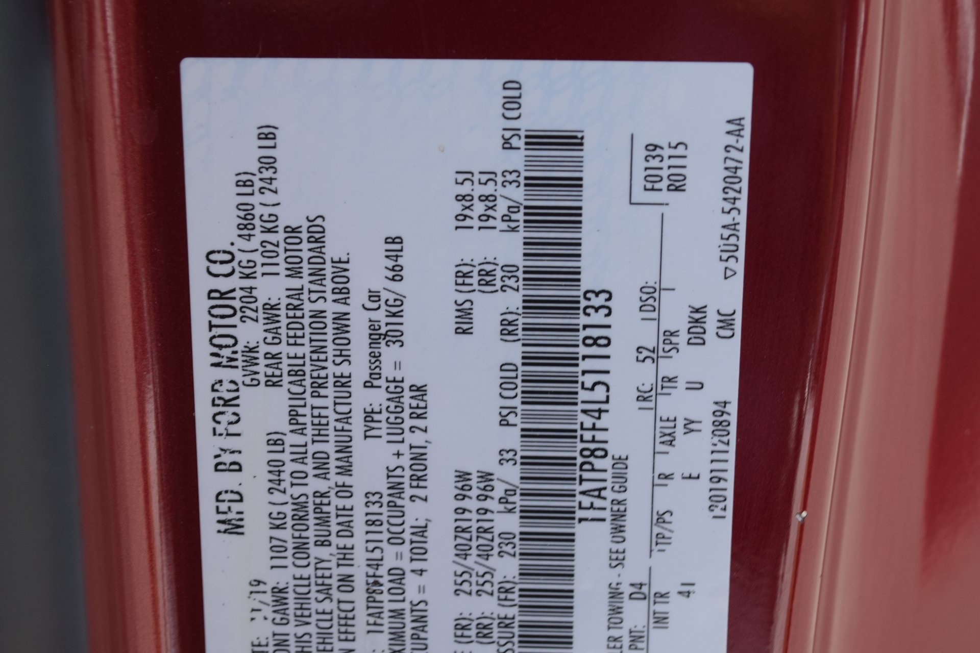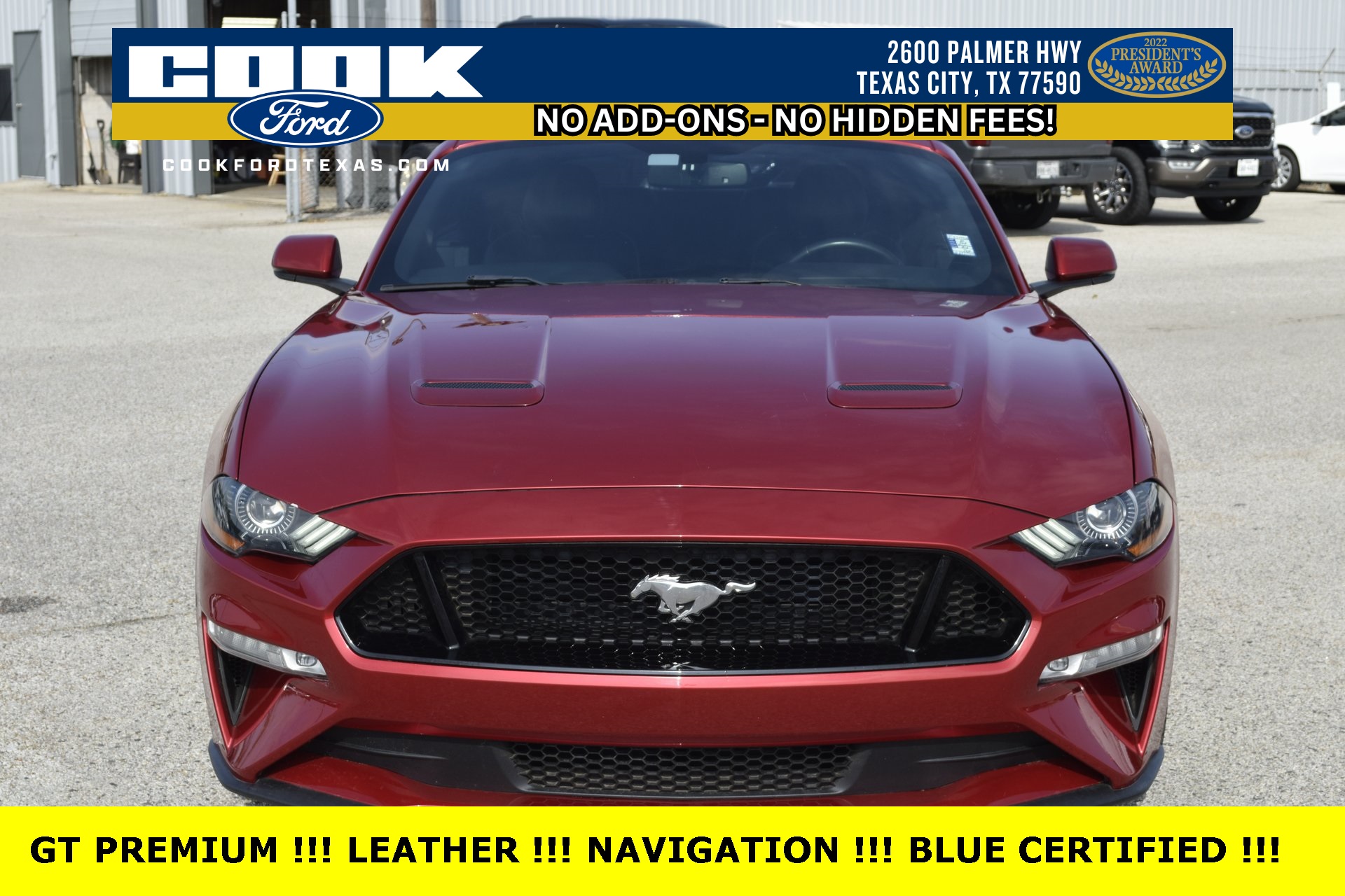 Certified. Red 2020 Ford Mustang GT Premium RWD 10-Speed Automatic 5.0L V8 Ti-VCT 3.15 Limited Slip Rear Axle Ratio, Equipment Group 400A, Navigation System, Wheels: 19" x 8.5" Machined-Face Aluminum.
