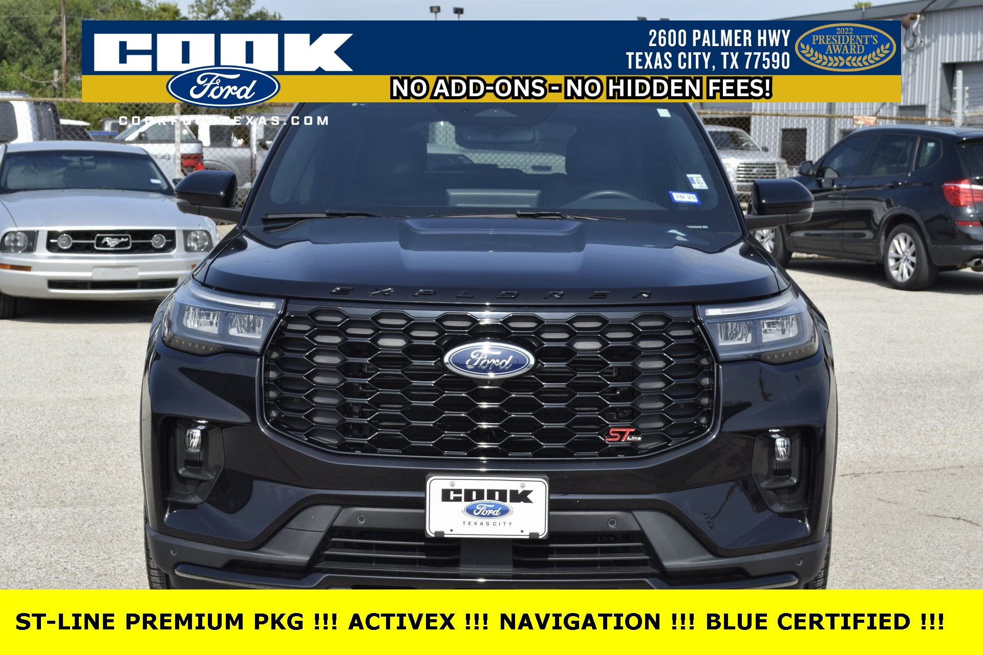Certified. Agate Black Metallic 2025 Ford Explorer ST-Line RWD 10-Speed Automatic 2.3L EcoBoost I-4 110V/150W AC Power Outlet, 2nd Row Heated Seats, Ambient Lighting, Auto-Dimming Interior Rear-View Mirror, Equipment Group 300A Standard Package, Memory Driver's Seat, Navigation System, Performance Brakes, Power-Folding Sideview Mirrors w/Autofold, P