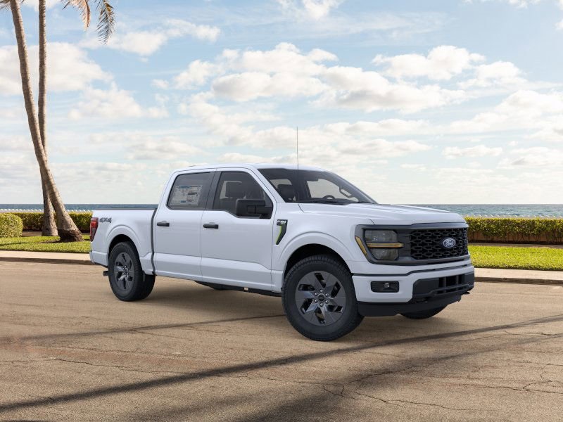 This 2025 Ford F-150 STX in Space White Metallic comes with the following features: 2.7L V6 EcoBoost 10-Speed Automatic 4WD Equipment Group 200A Mid (LED Fog Lamps w/LED Cornering Lamp and Wheels: 20" Dark Gray w/Machined Aluminum), GVWR: 6,650 lbs Payload Package, 4-Wheel Disc Brakes, 6 Speakers, ABS brakes, Air Conditioning, Alloy wheels, AM/FM radio: SiriusXM with 360L, Auto Hi