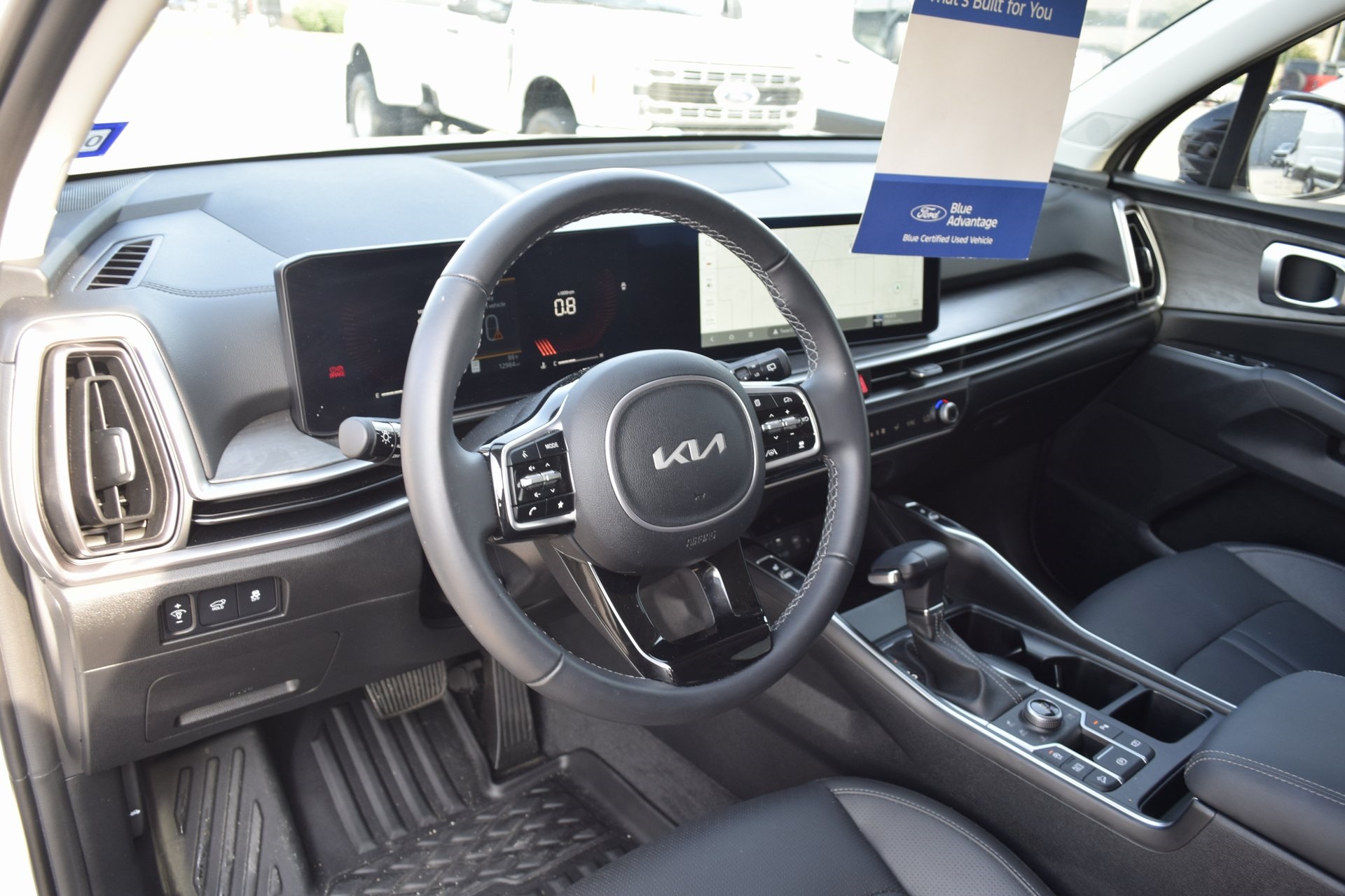 Certified. Glacial White Pearl 2025 Kia Sorento X-Line EX AWD 8 Speed Dual Clutch 2.5L I4 DGI Turbocharged DOHC 16V LEV3-SULEV30 281hp Navigation System, Power Liftgate, Power moonroof.
