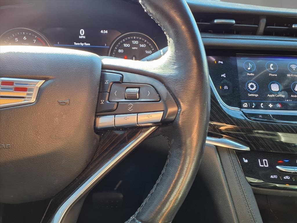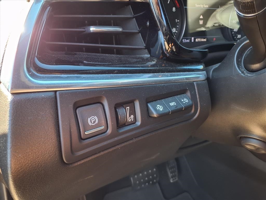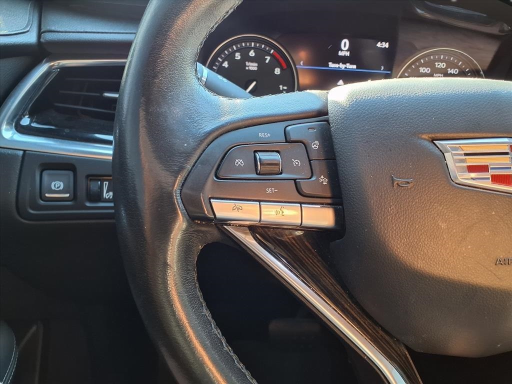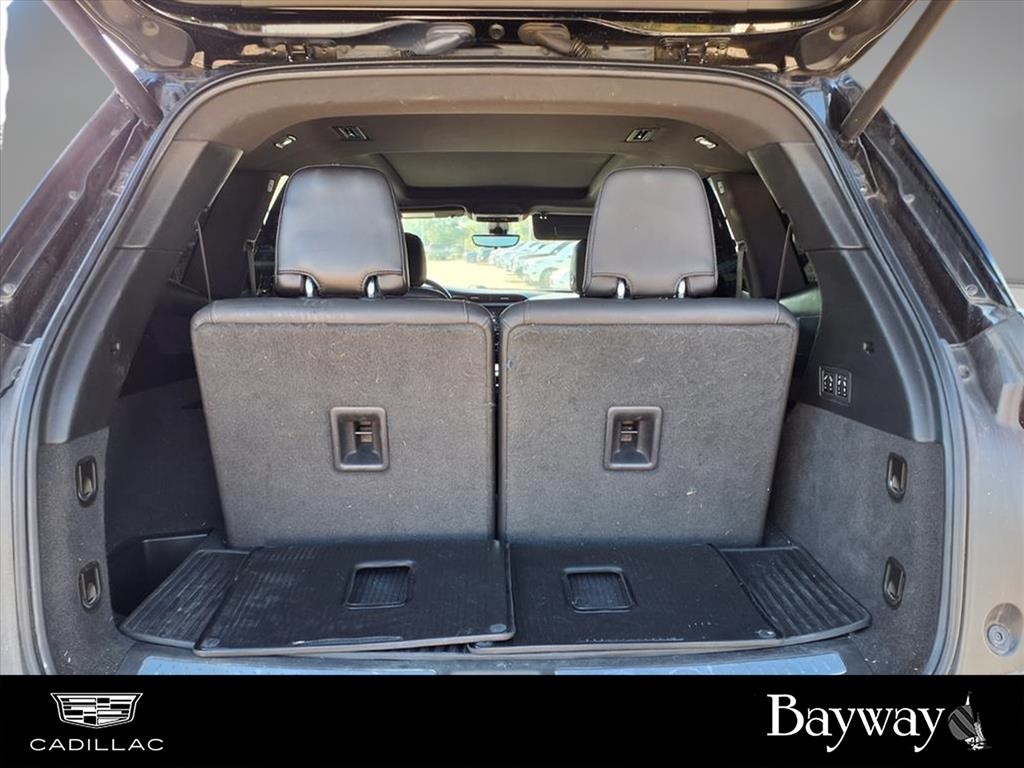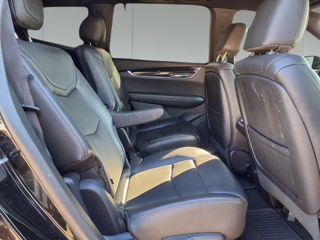 dio System, Front & Rear Park Assist, and Teen Driver), 2-Way Power Driver Lumbar Control Seat Adjuster, 2-Way Power Passenger Lumbar Control Seat Adjuster, 3.49 Axle Ratio, 3rd row seats: split-bench, 4-Wheel Disc Brakes, 6-Passenger Seating, 8 Speakers, ABS brakes, Air Conditioning, Alloy wheels, AM/FM radio: SiriusXM, AppLink/Apple CarPlay and Android Auto, Audio memory, Auto High-beam Headlights, Auto tilt-away steering wheel, Auto-dimming door mirrors, Auto-dimming Rear-View mirror, Automatic Stop/Start w/Disable, Automatic temperature control, Brake assist, Bumpers: body-color, Compass, Delay-off headlights, Driver & Front Passenger Heated Seats, Driver door bin, Driver vanity mirror, Dual front impact airbags, Dual front side impact airbags, Electronic Stability Control, Emergency communication system: OnStar and Cadillac connected services capable, Exterior Parking Camera Rear, Four wheel independent suspension, Front anti-roll bar, Front Bucket Seats, Front Center Armrest, Front dual zone A/C, Front License Plate Bracket, Front reading lights, Fully automatic headlights, Garage door transmitter, Heated door mirrors, Heated front seats, Heated steering wheel, Illuminated entry, Knee airbag, Leather Seating Surfaces w/Mini-Perforated Inserts, Leather steering wheel, Low tire pressure warning, Memory seat, Occupant sensing airbag, Outside temperature display, Overhead airbag, Overhead console, Panic alarm, Passenger door bin, Passenger vanity mirror, Power door mirrors, Power driver seat, Power Liftgate, Power moonroof: UltraView, Power passenger seat, Power steering, Power windows, Radio data system, Radio: Cadillac User Experience AM/FM Stereo, Rain sensing wipers, Rear air conditioning, Rear anti-roll bar, Rear reading lights, Rear seat center armrest, Rear window defroster, Rear window wiper, Remote keyless entry, Ride & Handling Suspension, Roof rack: rails only, Security system, SiriusXM w/360L, Speed control, Speed-sensing steering, Split folding rear seat, Spoiler, Steering wheel memory, Steering wheel mounted audio controls, Tachometer, Telescoping steering wheel, Tilt steering wheel, Traction control, Trip computer, Turn signal indicator mirrors, Variably intermittent wipers, Voltmeter, and Wheels: 20" 6-Split Spoke Alloy. Recent Arrival!
