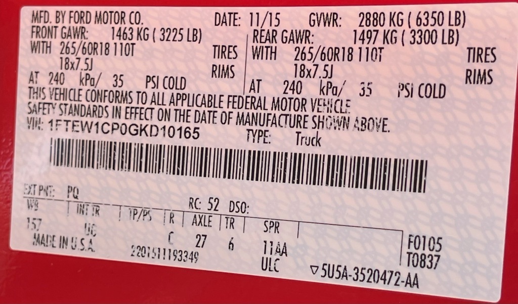 2016 Ford F-150 Race Red RWD 6-Speed Automatic Electronic 2.7L V6 EcoBoost