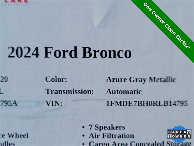 Big Star Chrysler Jeep Dodge Ram Fiat is excited to offer this wonderful-looking 2024 Ford Bronco. Big Bend 4WD Azure Gray Metallic