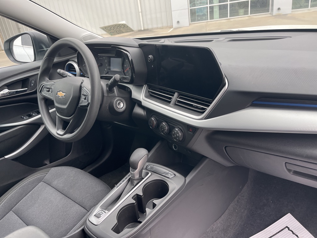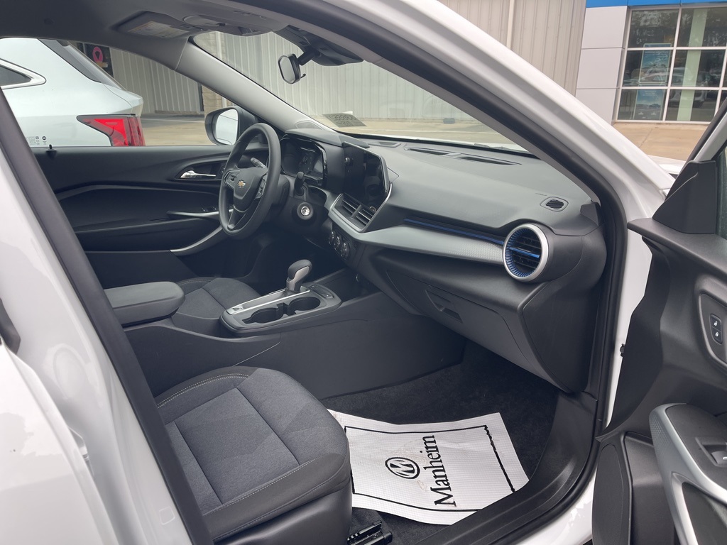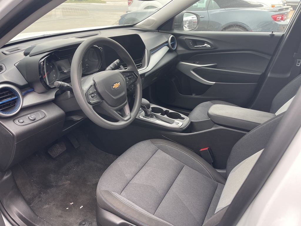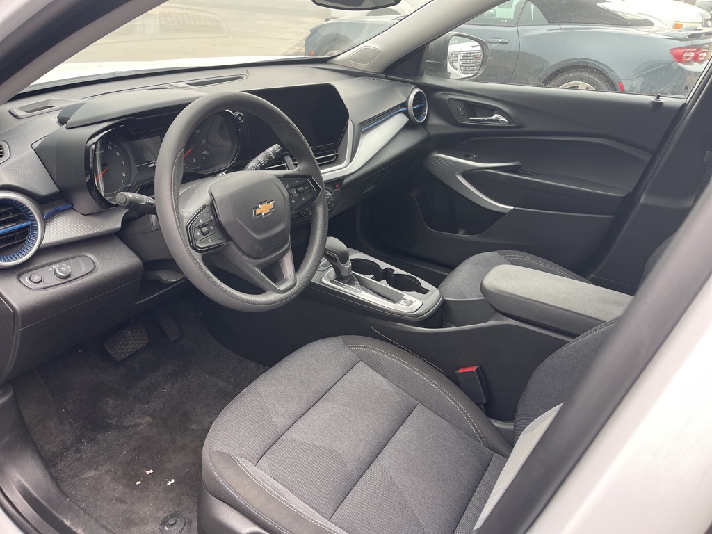 DOHC DI w/VVT 6-Speed Automatic FWD Preferred Equipment Group 1LS, 17" Steel Wheels w/Wheel Covers, 2-Way Adjustable Front Head Restraints, 3.50 Final Drive Axle Ratio, 4 Speakers, 4-Speaker Audio System Feature, 4-Way Manual Front Passenger Seat Adjuster, 4-Wheel Disc Brakes, 6-Way Manual Driver Seat Adjuster, ABS brakes, Air Conditioning, AM/FM radio: SiriusXM, Auto High-beam Headlights, Brake assist, Bumpers: body-color, Cloth Seat Trim, Compass, Delay-off headlights, Driver door bin, Driver vanity mirror, Dual front impact airbags, Dual front side impact airbags, Electronic Stability Control, Emergency communication system: OnStar One Essentials, Exterior Parking Camera Rear, Front anti-roll bar, Front Bucket Seats, Front Center Armrest, Front reading lights, Front wheel independent suspension, Fully automatic headlights, Illuminated entry, Low tire pressure warning, Occupant sensing airbag, Outside temperature display, Overhead airbag, Overhead console, Panic alarm, Passenger door bin, Passenger vanity mirror, Power door mirrors, Power steering, Power windows, Premium audio system: Chevrolet Infotainment 3, Radio data system, Radio: Chevrolet Infotainment 3 System w/AM/FM, Rear window defroster, Rear window wiper, Remote keyless entry, Security system, SiriusXM Trial Subscription, Speed control, Split folding rear seat, Spoiler, Steering wheel mounted audio controls, Tachometer, Telescoping steering wheel, Tilt steering wheel, Traction control, Trip computer, and Variably intermittent wipers. 2025 Chevrolet Trax LS