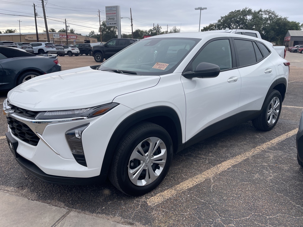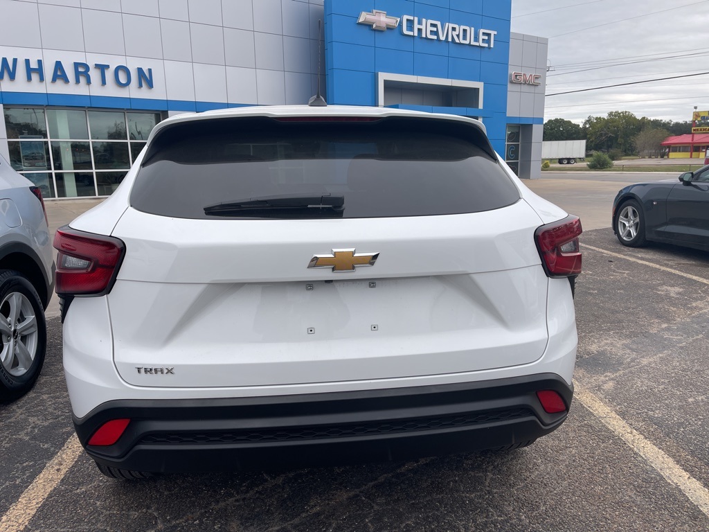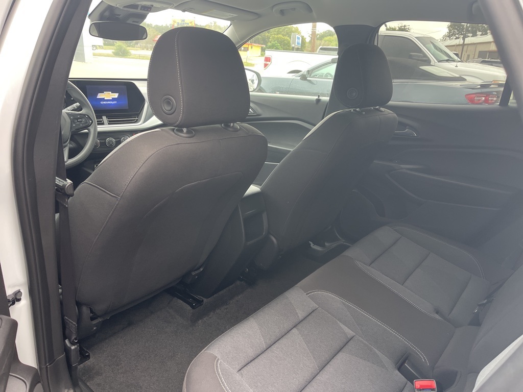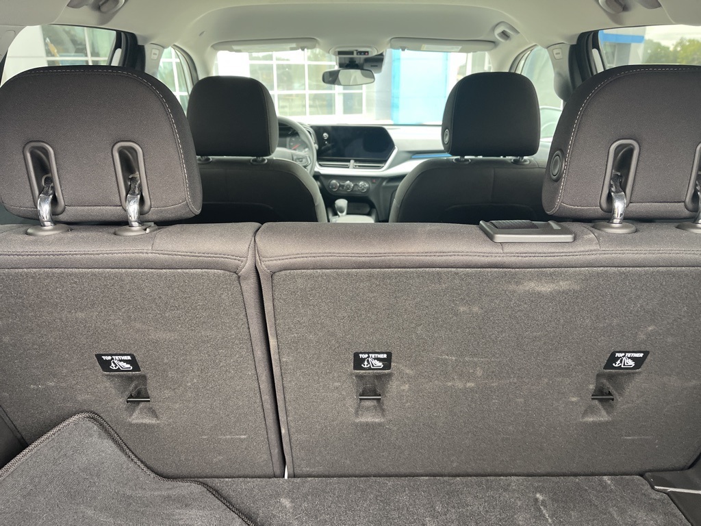 DOHC DI w/VVT 6-Speed Automatic FWD Preferred Equipment Group 1LS, 17" Steel Wheels w/Wheel Covers, 2-Way Adjustable Front Head Restraints, 3.50 Final Drive Axle Ratio, 4 Speakers, 4-Speaker Audio System Feature, 4-Way Manual Front Passenger Seat Adjuster, 4-Wheel Disc Brakes, 6-Way Manual Driver Seat Adjuster, ABS brakes, Air Conditioning, AM/FM radio: SiriusXM, Auto High-beam Headlights, Brake assist, Bumpers: body-color, Cloth Seat Trim, Compass, Delay-off headlights, Driver door bin, Driver vanity mirror, Dual front impact airbags, Dual front side impact airbags, Electronic Stability Control, Emergency communication system: OnStar One Essentials, Exterior Parking Camera Rear, Front anti-roll bar, Front Bucket Seats, Front Center Armrest, Front reading lights, Front wheel independent suspension, Fully automatic headlights, Illuminated entry, Low tire pressure warning, Occupant sensing airbag, Outside temperature display, Overhead airbag, Overhead console, Panic alarm, Passenger door bin, Passenger vanity mirror, Power door mirrors, Power steering, Power windows, Premium audio system: Chevrolet Infotainment 3, Radio data system, Radio: Chevrolet Infotainment 3 System w/AM/FM, Rear window defroster, Rear window wiper, Remote keyless entry, Security system, SiriusXM Trial Subscription, Speed control, Split folding rear seat, Spoiler, Steering wheel mounted audio controls, Tachometer, Telescoping steering wheel, Tilt steering wheel, Traction control, Trip computer, and Variably intermittent wipers. 2025 Chevrolet Trax LS